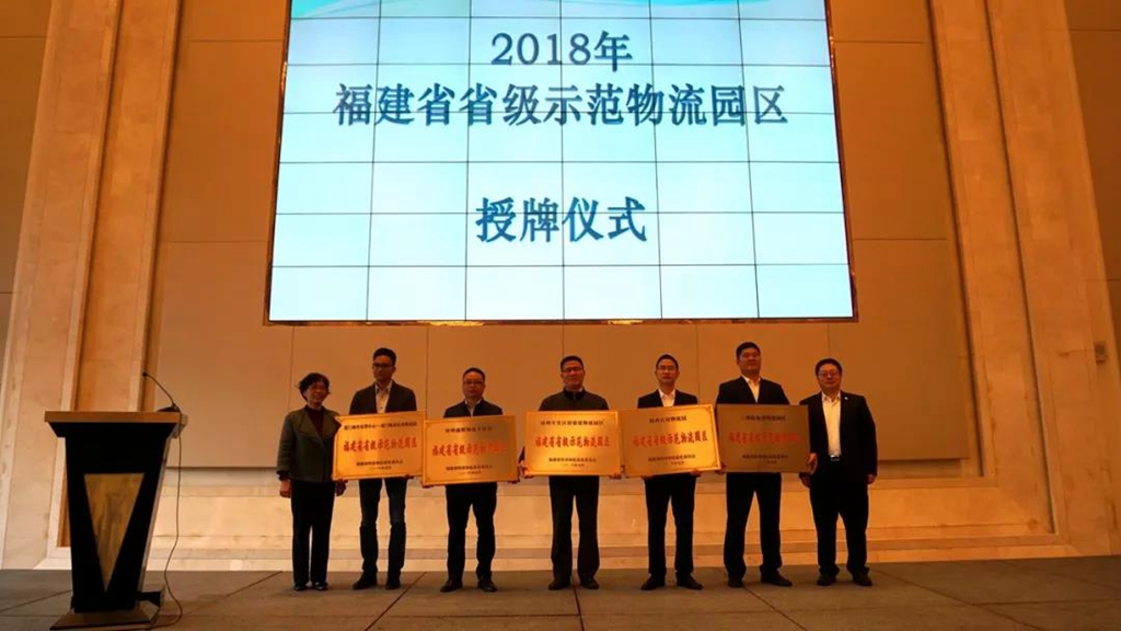 同时,在会议期间还举行2018年省级示范物流园区授牌仪式。此举是为进一步促进我省物流园区统筹规划和科学发展,培育、建设一批布局集中、用地集约、功能集成的示范物流园区,2017年开始,省工信厅组织开展福建省省级示范物流园区创建工作。2018年我省又创建了5家省级示范物流园区,分别是厦门邮件处理中心--厦门邮政电商物流园、漳州盛辉物流公路港、漳州开发区招银港物流园区、海西石材物流园、三明陆地港物流园区。省工信厅许榕处长、省物流协会李兴湖会长为示范园区授牌。