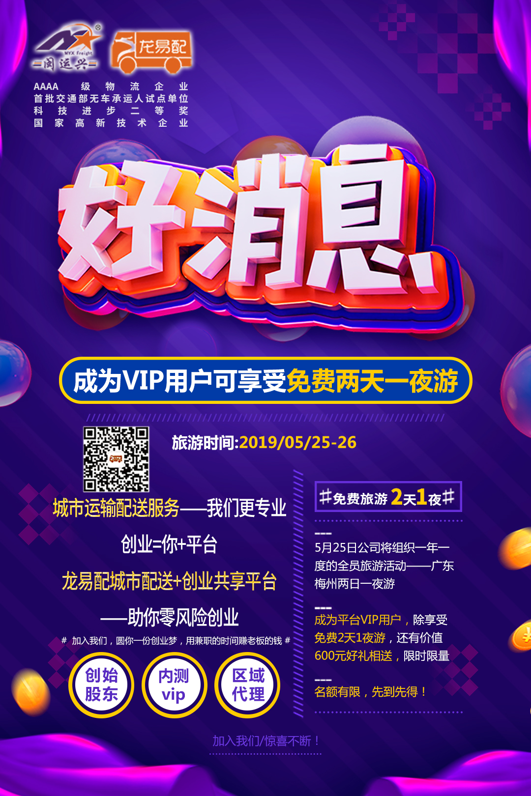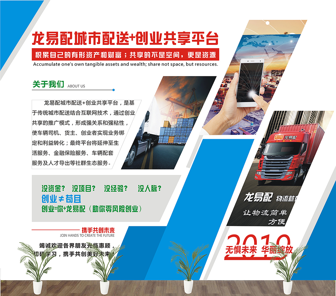龙易配城市配送+创业共享平台,是基于传统城市配送结合互联网技术,通过创业共享的推广模式,形成强关系和强粘性,使车辆司机、货主、创业者实现业务绑定和利益转化;最终平台将延伸至生活服务、金融保险服务、车辆配套服务及人才导出等社群生态服务。
