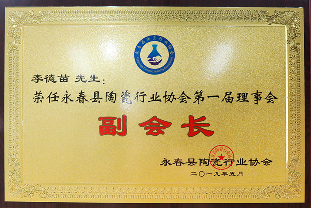 现场,县政协副主席、工商联主席汤若狮向我司执行董事.总裁李德苗颁发奖牌,授予其“永春县陶瓷行业协会第一届理事会副会长”称号!加入永春县陶瓷行业协会,与陶瓷行业协会的成员们之间相互沟通交流与学习,扩充视野,开放格局,将是闽运兴物流~龙易配平台发展历程中的重要一步。
