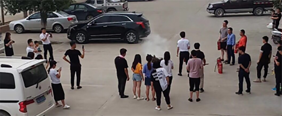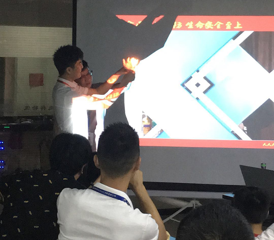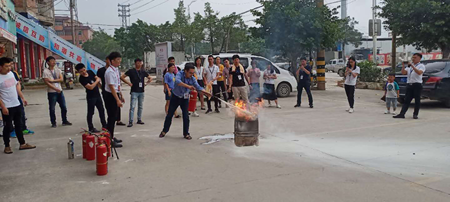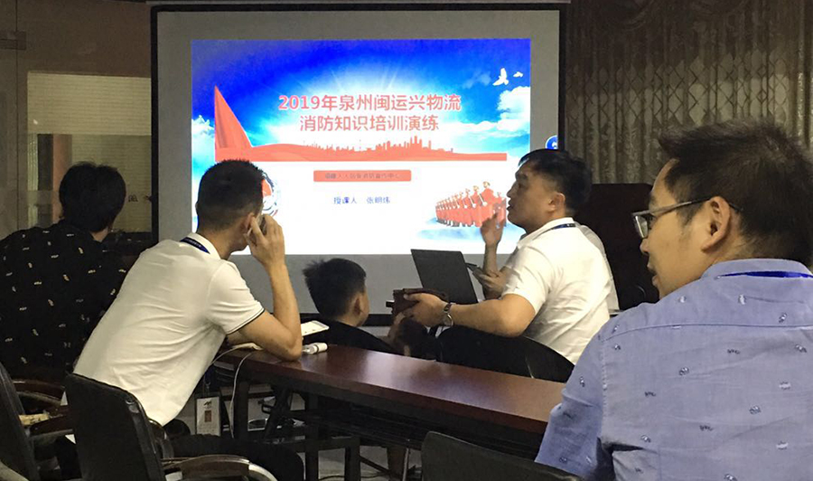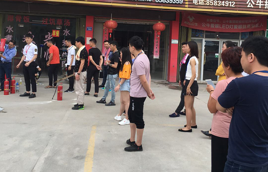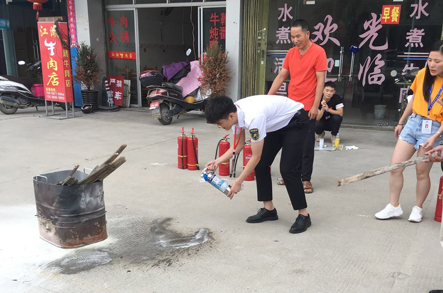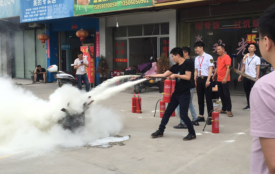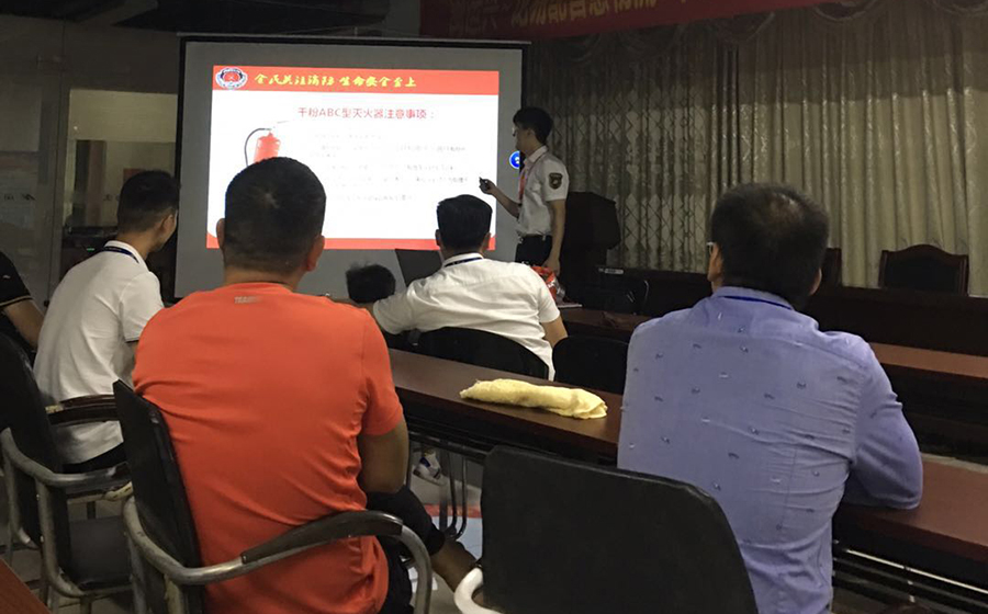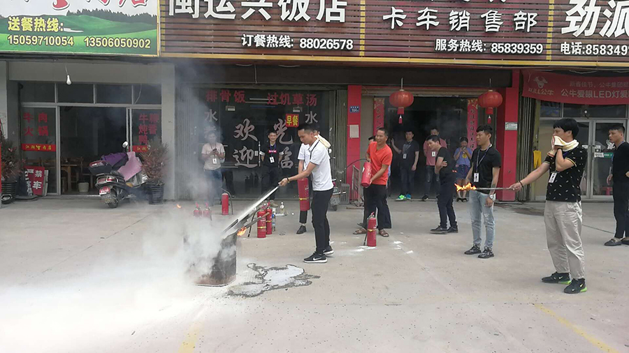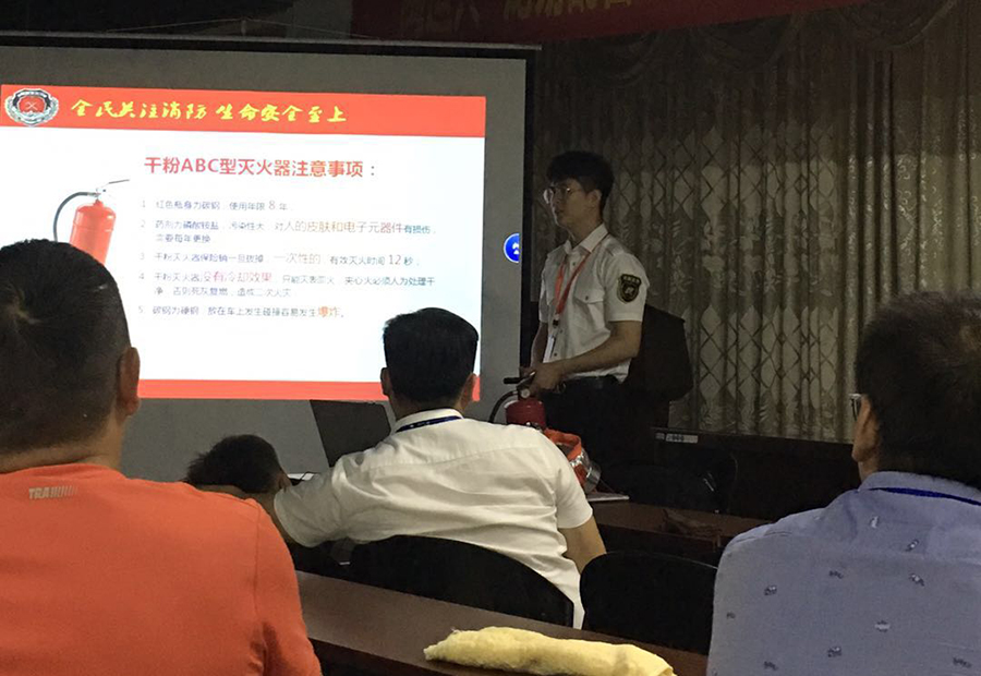 现场消防员讲解发现突发初期火灾的应急处置方案,如何正确报警、如何扑救初期火灾、如何使用灭火器以及火场逃生自救等消防安全知识……