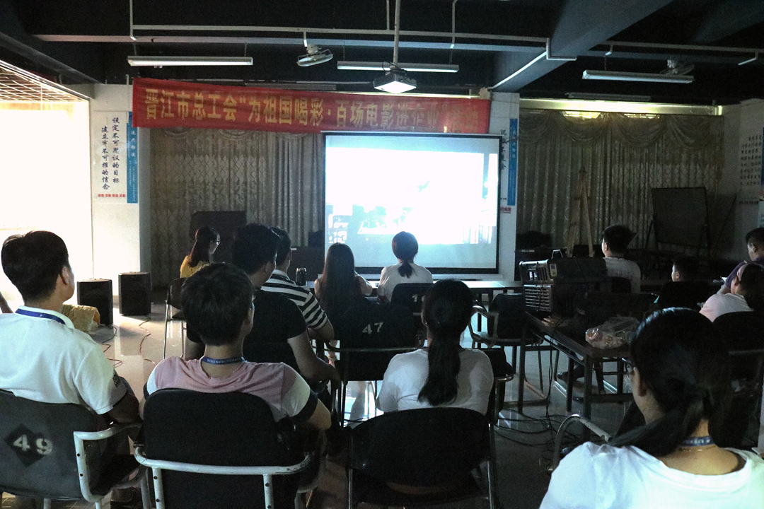 2019年是新中国成立70周年,为热情讴歌建立新中国的伟大历史进程和社会主义建设的伟大成就,进一步激发广大职工群众的爱国主义情怀,进一步凝聚民心,激发斗志,提升职工群众的文化获得感和幸福感,晋江市总工会开展了“为祖国喝彩·百场电影进企业”大型公益活动。为响应总工会号召,我司员工于2019年7月13日下午三点在公司三楼会议室集体观影。